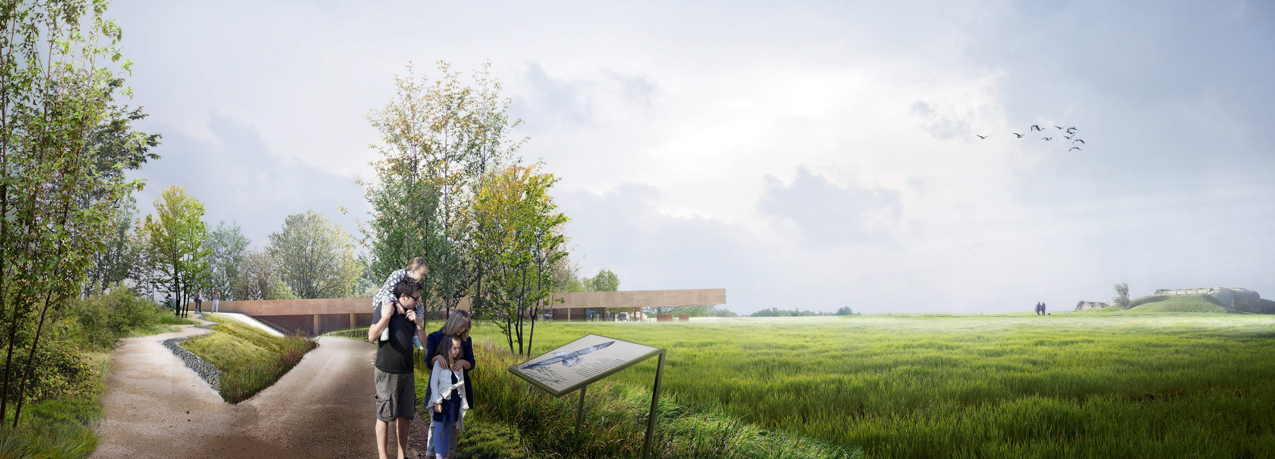 Construction du nouveau bâtiment d’accueil du site touristique avec belvédère et table d’orientation à facettes en partie supérieure. Refonte de l’aménagement paysager.